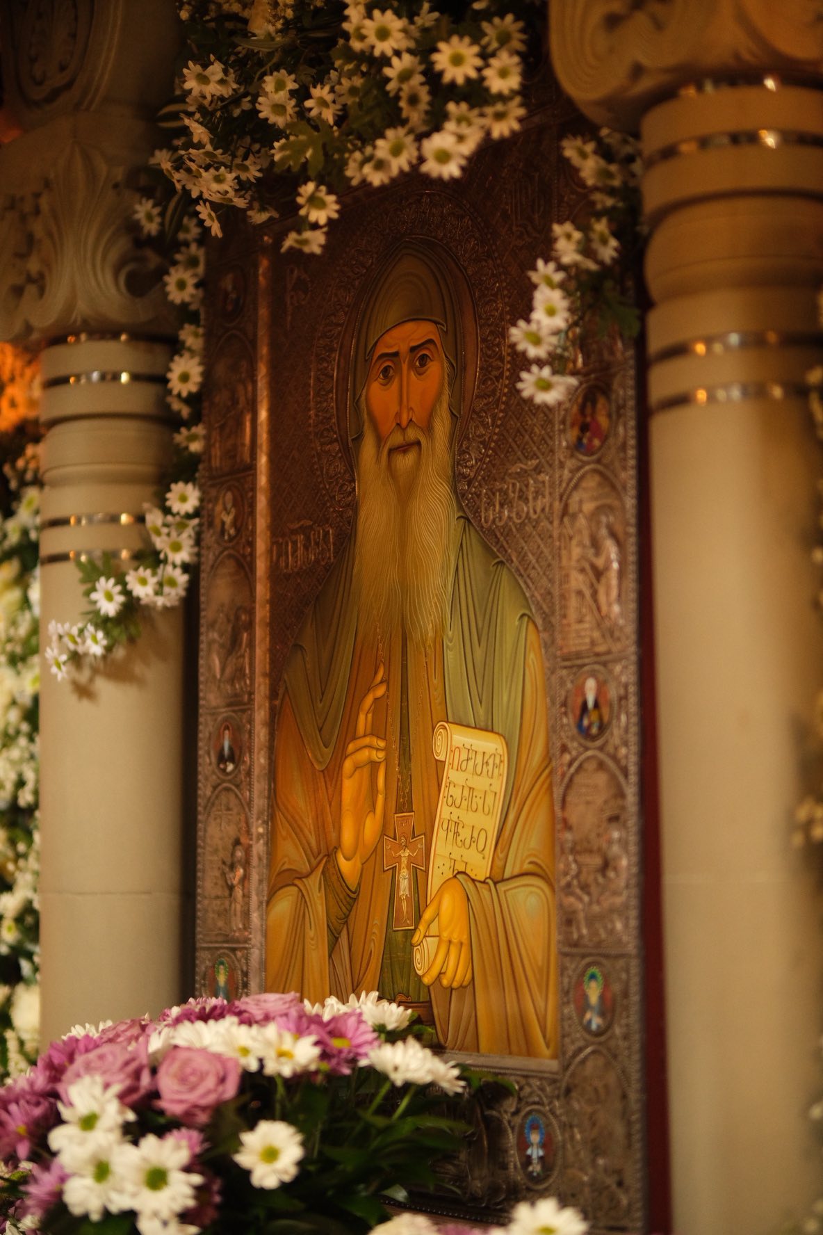 201. მამა გაბრიელის ლუსკუმისთვის მთავარი ხატი, ცხოვრების სცენებით და ტიხრული მინანქრით – ვერცხლი, 100/67 სმ.