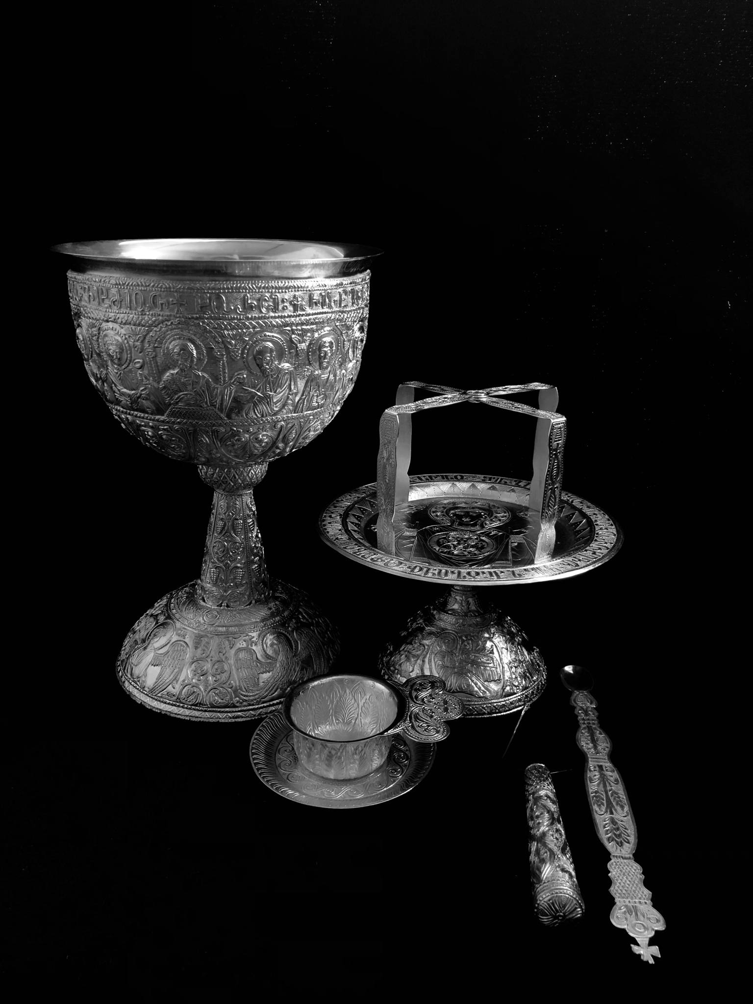 1. წმინდა ზიარების ბარძიმი თორმეტი მოციქულის გამოსახულებით – სრულიად საქართველოს კათოლიკოს-პატრიარქს.